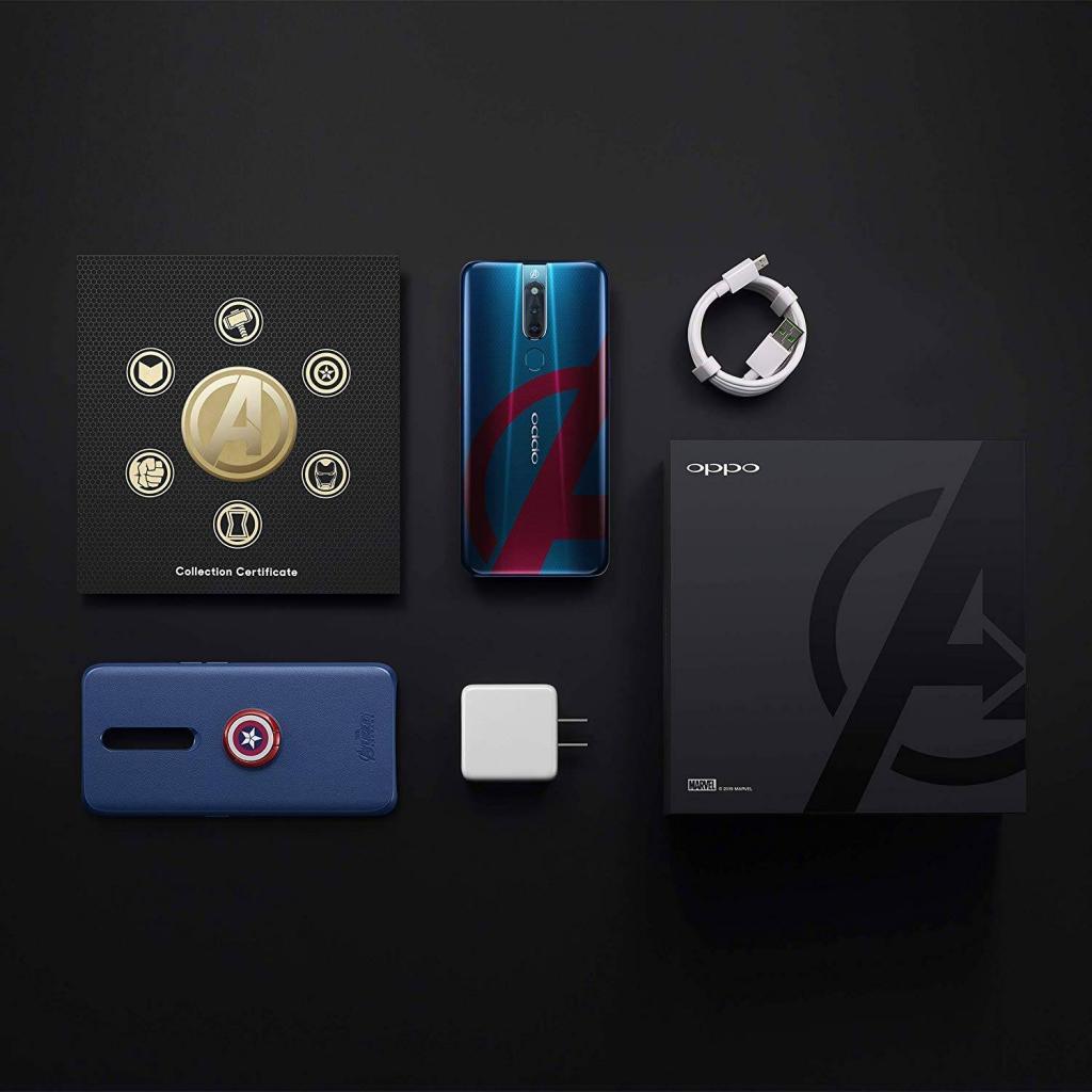 Az Oppo kiadásában a hátsó panel csillogó kék és piros színeket használ, mely azt a bizonyos „A” betű egy részét adja ki. A telefonhoz tartozik egy kék színű tok is, amely dombornyomott Endgame logóval és egy integrált fogógyűrűvel rendelkezik, amely Amerika kapitány pajzsát veszi körül. Van egy gyűjthető jelvény is a dobozban, sőt a telefon egyéni Avengers háttérképet is kapott.