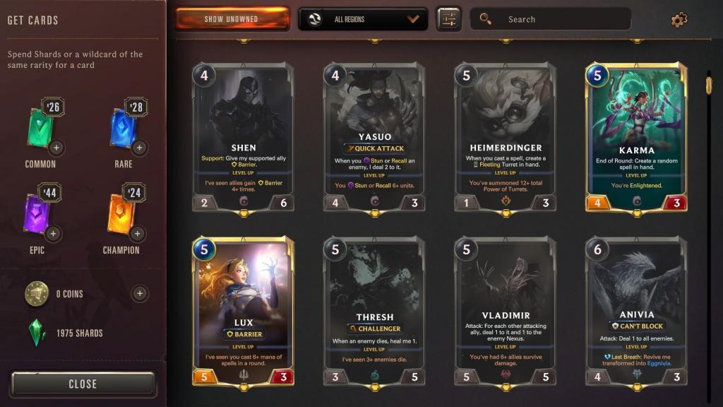 A játékos profilja szinttel is rendelkezik és küldetéseket is kap, amellyel folyamatosan gyűjtheti a kártyákhoz szükséges craftolási anyagokat, azonban ezek sokkal könnyebben elérhetők, mint a Hearthstone esetében. Így pénzért nem jutunk valós előnyhöz csupán skinekre költhetünk itt is. A ládanyitogatás itt sem marad el, a különböző mérföldkövenként a lootboxok szerelmesei is kiélhetik magukat.