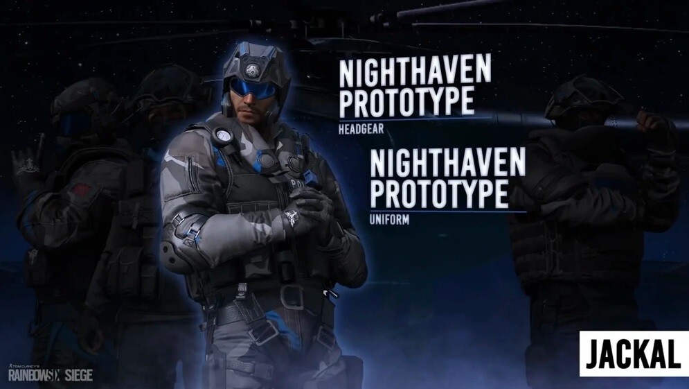 6 uniform, 6 headgear és 6 weapon, Alibi, Fuze, IQ, Jackal, Mute és Rook mellé.