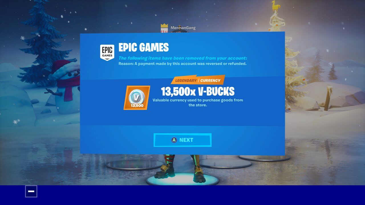 Sikerült kimutatniuk, hogy melyek azok a V-Buck mozgások, amik külsős forrásból érkeznek, ezeket visszavezetve pedig minden tranzakciót visszafordít az Epic Games. Vagyis ha valaki vásárolt külsős forrásból V-Buckot, akkor az biztosan az enyészeté lesz néhány napon belül, ha pedig ezeket már elköltötte a személy, a V-Buckból vett tartalmakat fogja elvenni a kiadó.