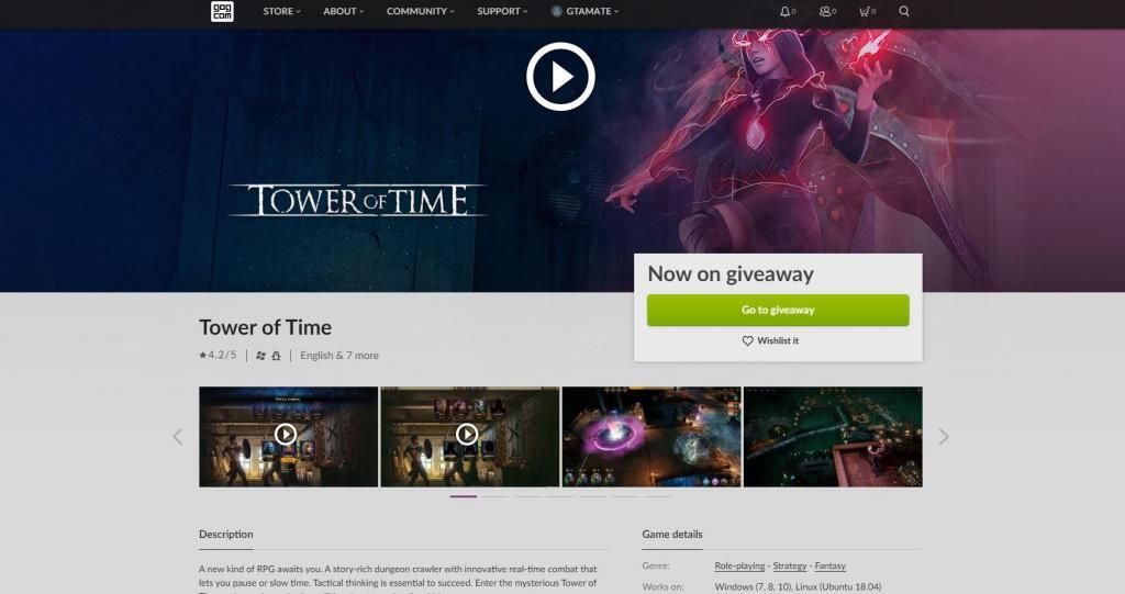 Nem csak az Epic nyomta meg az év végét,a maga 10 ezer forintosutolsó ajándék játékával, hanem bizony a a GOG-nál is készültek év végi meglepetéssel. Ezúttal az eredetileg 7 ezer forintért kínált Tower of Time-ot zsebelhetjük be teljesen ingyen, ehhez pedig csupán egy gog accountra lesz szükségünk.