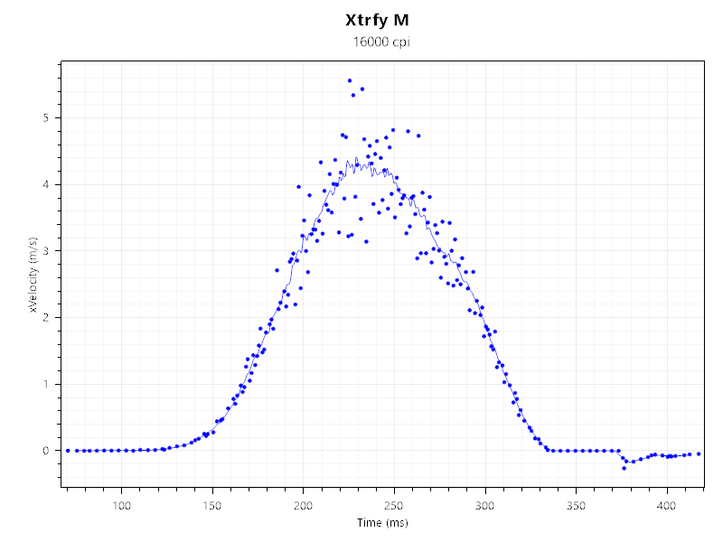 Az OxyPlot tesztje mellett a játékok során sem tapasztaltunk anomáliákat, az egér remekül tette a dolgát. Egyedül a közepes LOD-ra (lift off distance) kaptuk fel a fejünket, azaz ha megemeljük az egeret, akkor pár milliméterről még érzékel a szenzora, hiába tartjuk az egeret a levegőben. Ez már csak azért is érthetetlen, mert a PMW3389 esetén a LOD szoftveresen személyre szabható, csak ugyebár az Xtrfy csapata nem készült szoftverrel, így az állítás lehetőségéről is le kell mondanunk, de ezt egyébként firmware-esen is javíthatják, de erre elég kevés esélyt látunk.