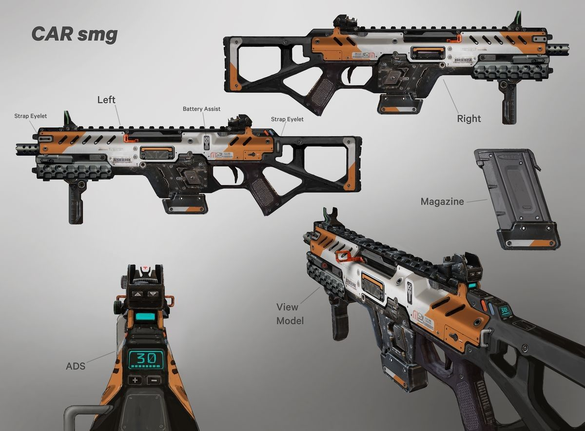 A másik fegyver, aminek tesztelték a fejlesztők a játékmenetét a CAR SMG. S mit ad isten, ez a fegyver is felbukkant már a Titanfall játékokban… A CAR egy bivalyerős és rettentően pontos fegyver, ám ezért cserébe a fejlesztők kis tárat és az átlagnál lassabb lőgyorsaságot adtak neki.