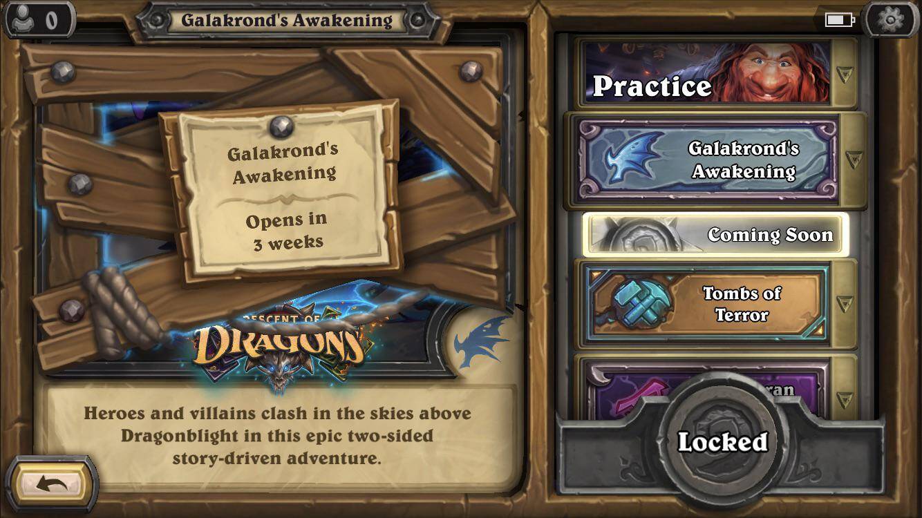 A névből kiindulva Galakrond paklikat támogató, és továbbra is sárkányos vonalon mozgó kártyák érkeznek majd, egészen pontosan 35 darab. Szokás szerint 4 fizetős szárnnyal számolhatunk, darabja 700 goldba kerül majd. Összesen tehát 2800 goldra lesz szükségünk