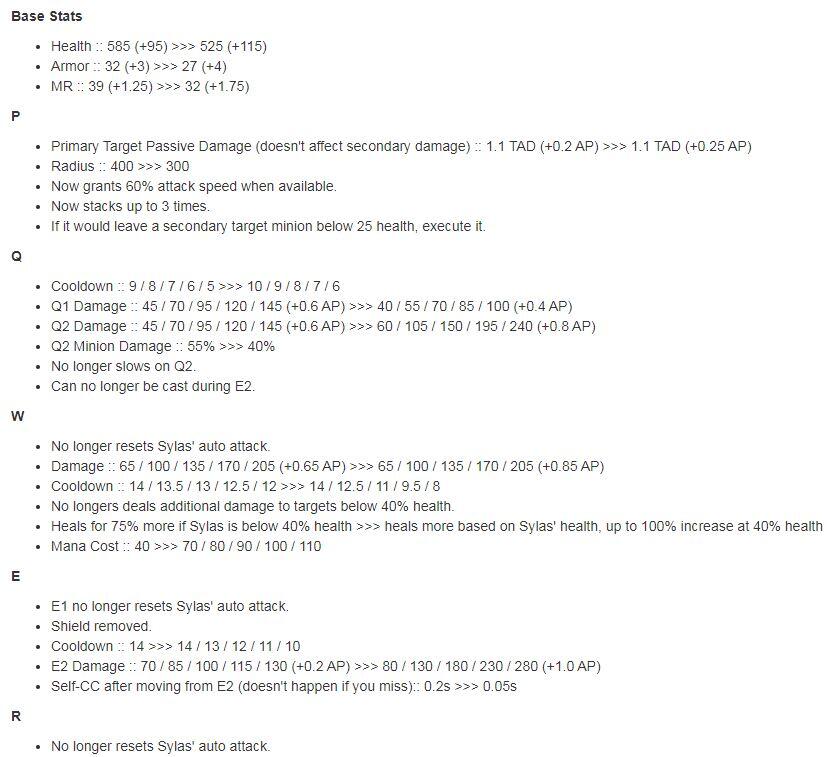 Mindezek mellett Sylas egy igen komoly átalakításon fog átesni (már nem először), íme Scruffy listája a várható változtatásokról:
