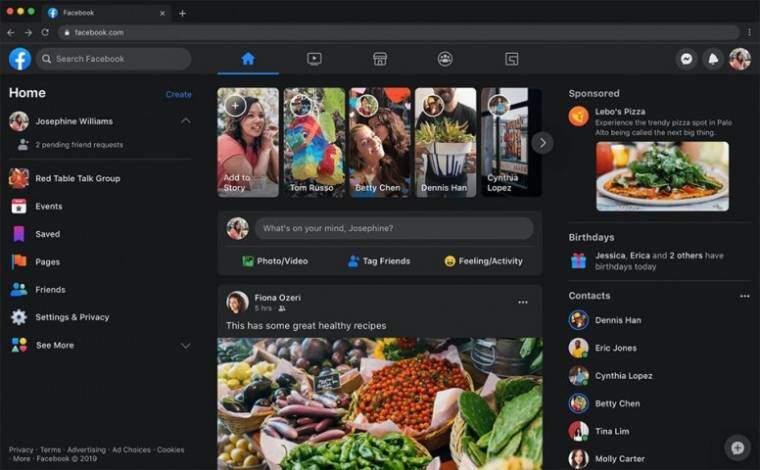 Íme a Facebook sötét kinézete / Kép: Facebook