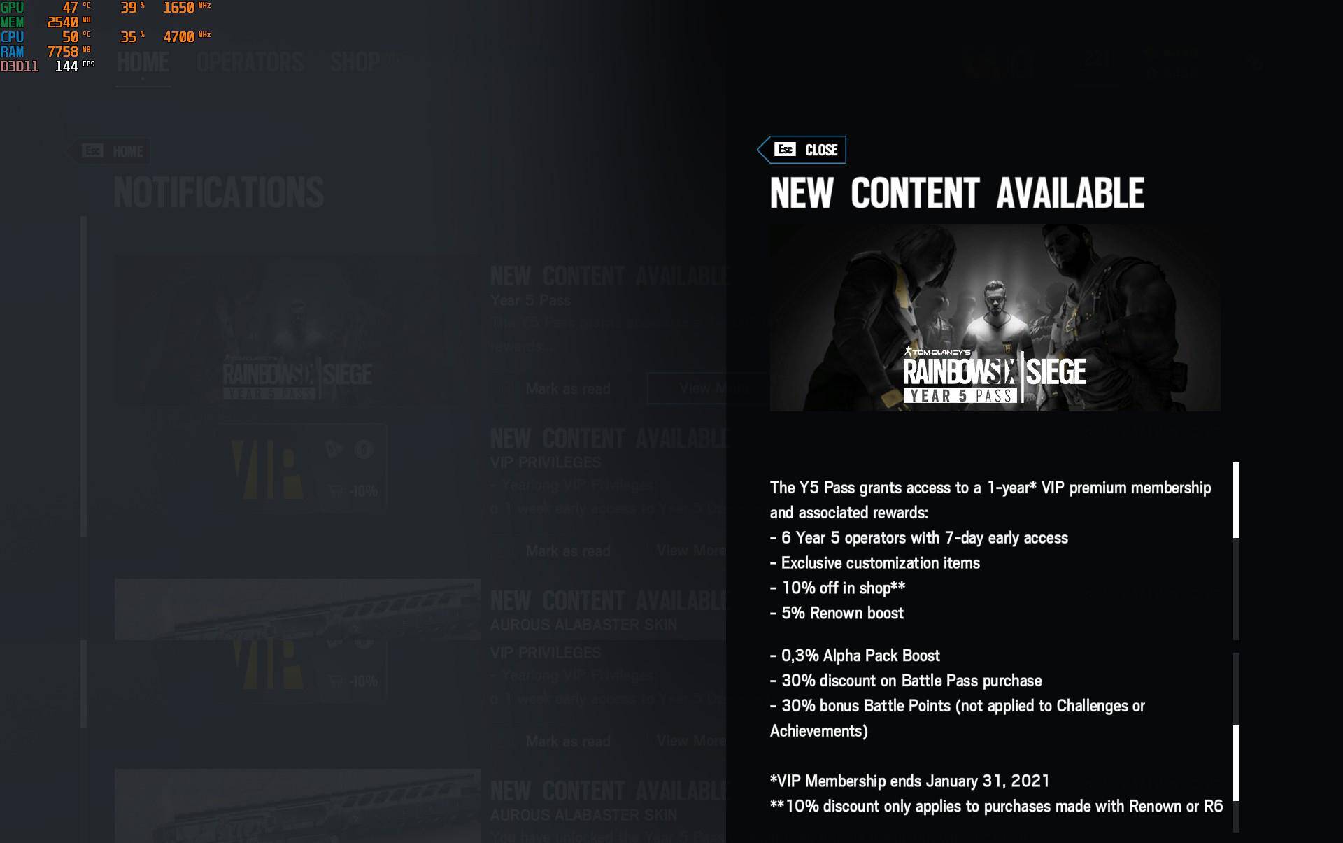 Hivatalosan még be sem jelentették, de mostanra már szinte mindent tudunk a Year 5 Pass elemeiről. Változás az eddigiekhez képest, hogy 8 helyett csak 6 új operátort kapunk a Pass mellé. De ahogy a korábbi években, ezúttal is lesz kedvezmény a shopban, olcsóbb lesz a Battle Pass, kapunk Renown és Alpha Pack boostot, valamint VIP tagságot és exkluzív skint is.