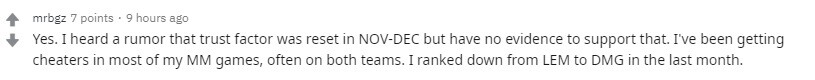 „Hallottam pletykákat a Trust Factor nullázásról, november-december környékén. Szinte minden meccsen csalókat kapok, néha mindkét csapatban van egy.”