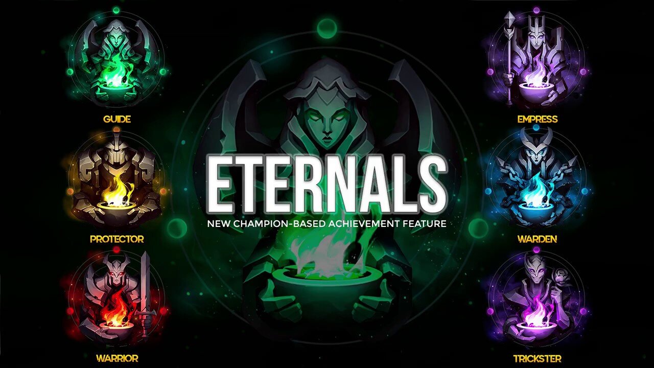 A szórakoztató elemek között szó esett az átalakított Eternals funkcióról. Ez lényegében egy beépített Achievement rendszer lesz, ami minden karakter esetében más-más statisztikákat fog monitorozni.