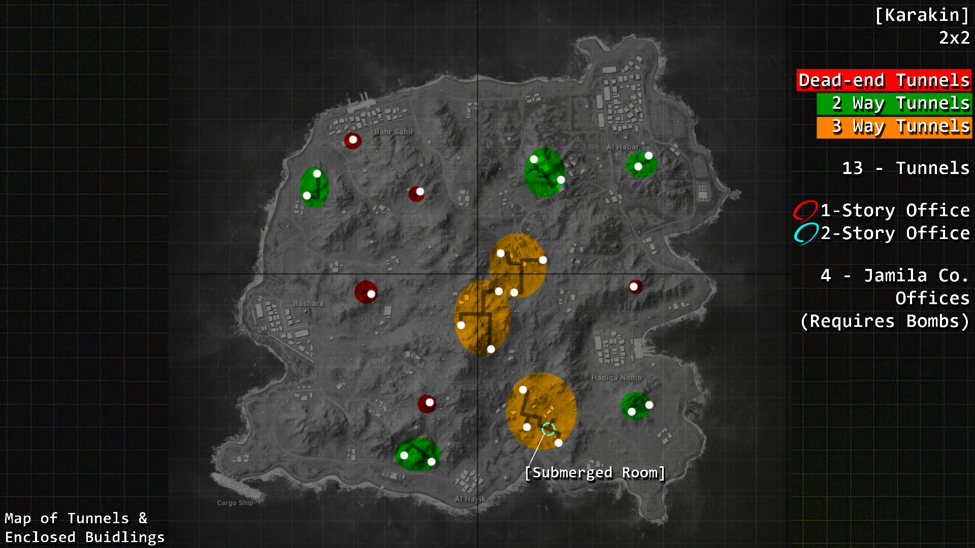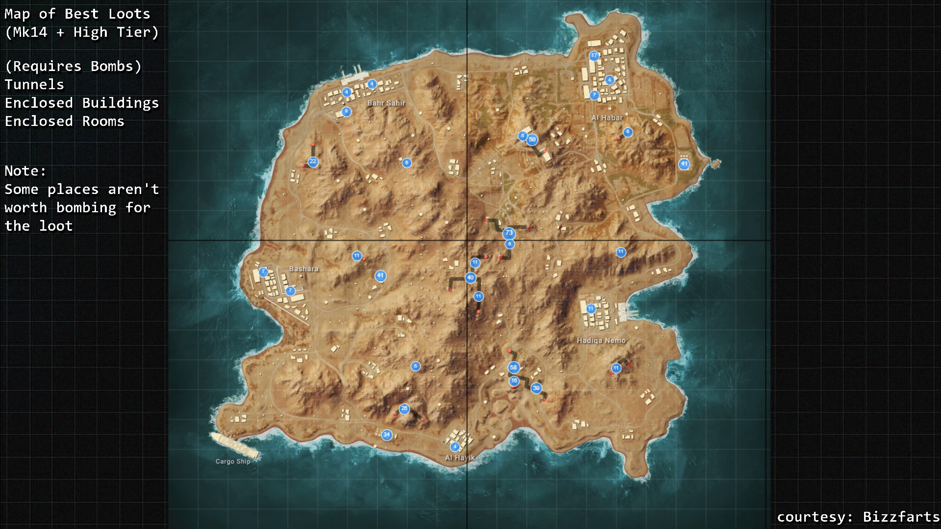 Egyedül Karakinon találhatunk Mk14-et a szabadban, így akár ezt a félautomatát  is megtalálhatjuk, ha fentebbi térkép alapján keressük a lehető legjobb lootot. Az például világosan látszik, hogy míg Sanhokon borzasztó mennyiségű loot található a hajón, itt például nem érdemes délnyugatra ugrani. Karakin esetén a legjobb loot a titkos alagútrendszerben található, de persze pár nagyobb városban is rejtettek el finomságokat.