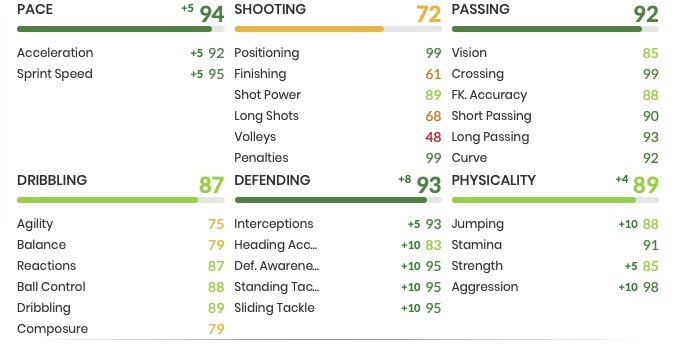 Támadás építésben is jól alkalmazható, hiszen a positioning, valamint a passing statisztikái is kiemelkedőek, de ugye egy védőnél a legfontosabb a védekezési statisztikája. Mi elsősorban egy Anchorral alkalmaznánk. A „pace whore-ok” is megnyugodhatnak ezzel egy picit, valamint a kulcs statjait is az egekbe emeli. Igen, tudjuk páran úgyis Shadowt tesztek majd rá…