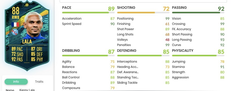 Kenny Lala a FIFA19 talán az egyik legmeghatározóbb jobb bekkje volt. Már év eleji InForm lapjával a legtöbb profi csapatában megtalálható volt, amit headliners kártyája csak tovább tetőzött. Az idei promo alkalmával, egy Moments SBC-vel büszkélkedhetett, ami a tavalyi 88-as lapjának állít emléket.
