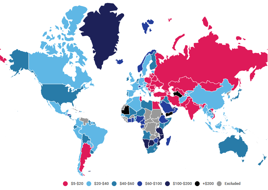 Az első helyen Szíria végzett, itt csupán 6,6 dollárt, azaz 1 900 Ft-ot kell otthagyni a szolgáltatásért, második Ukrajna, a harmadik helyen pedig Oroszország áll, ahol 7,53 dollár egy előfizetés.