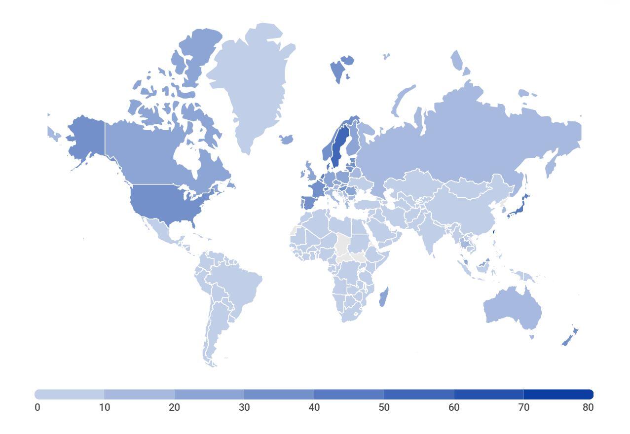 Országok internetsebesség szerint rangsorolva / Kép: cable.co.uk