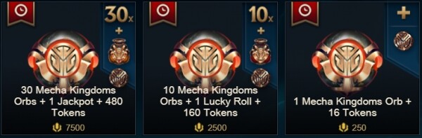 Az egyik 2500 RP-be kerül, tartalma 10 Orb, 1 Lucky Roll, valamint 160 Event Token. A másik 7500 RP-be kerül, 30 Orbot, 1 Jackpotot, és 480 Tokent tartalmaz. Ha csak ránézünk az értékekre akkor úgy tűnik, a nagy csomag ténylegesen háromszorosa a kicsinek.