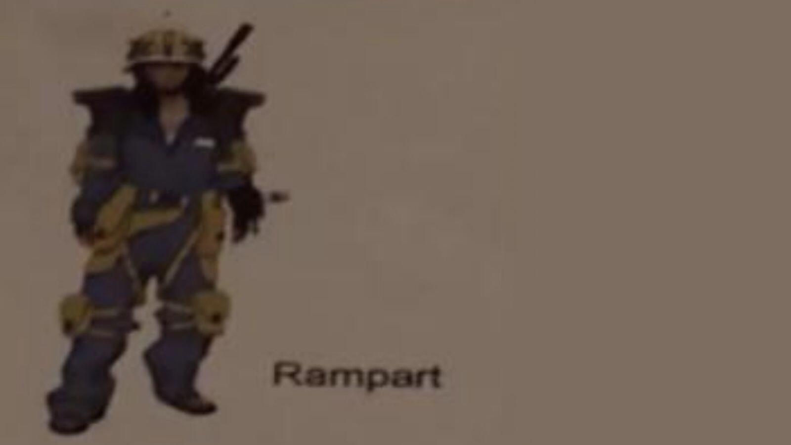 Az alábbi kép az egyetlen, mely ismeretes Rampartról, aki egy kiszivárgott fejlesztői karakterrajzból vált lehetséges hőssé. Rampart elvileg képes fedezéket készíteni, ami felfogja a lövéseket. Ezen kívül képes letenni egy gépfegyvert, amit bárki tud használni.