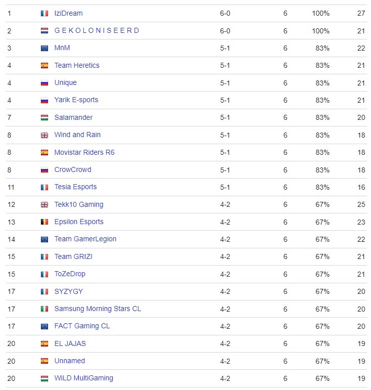 A valós idejű eredménykövető táblán a Salamander ugyan hátrébb csúszott, de még mindig a zárt Playoffot érő Top16-on belül állnak. Előrébb lépett viszont a WiLD, ha minden így maradna, az ötödik selejtező előtt már a 35. helyről várnák a folytatást.