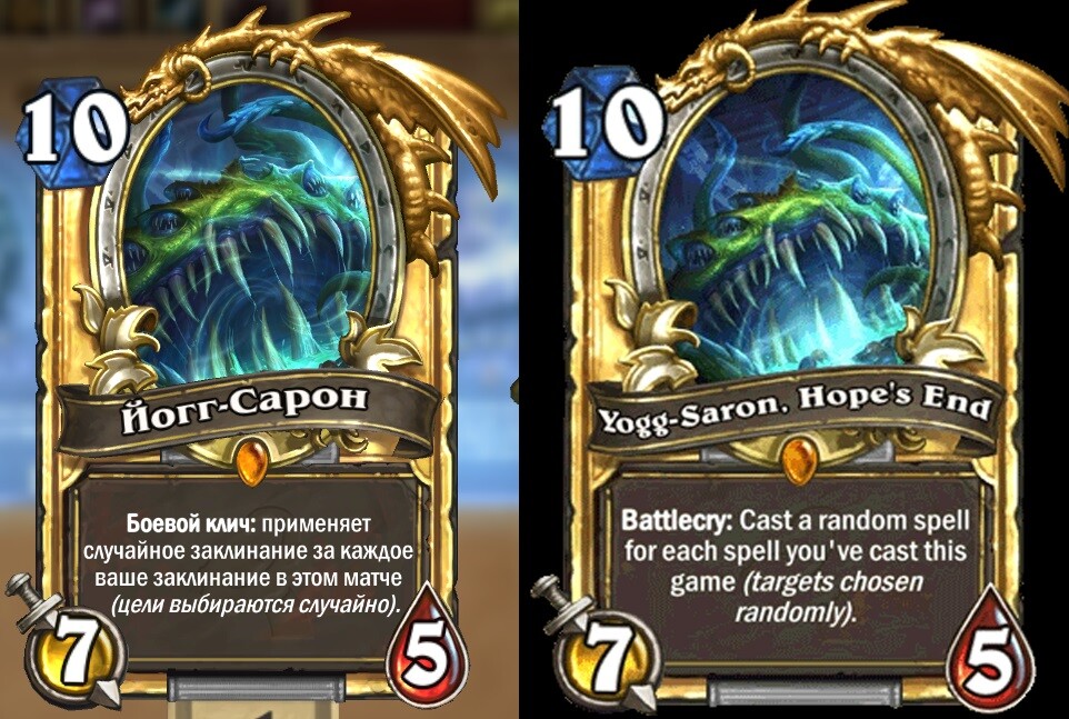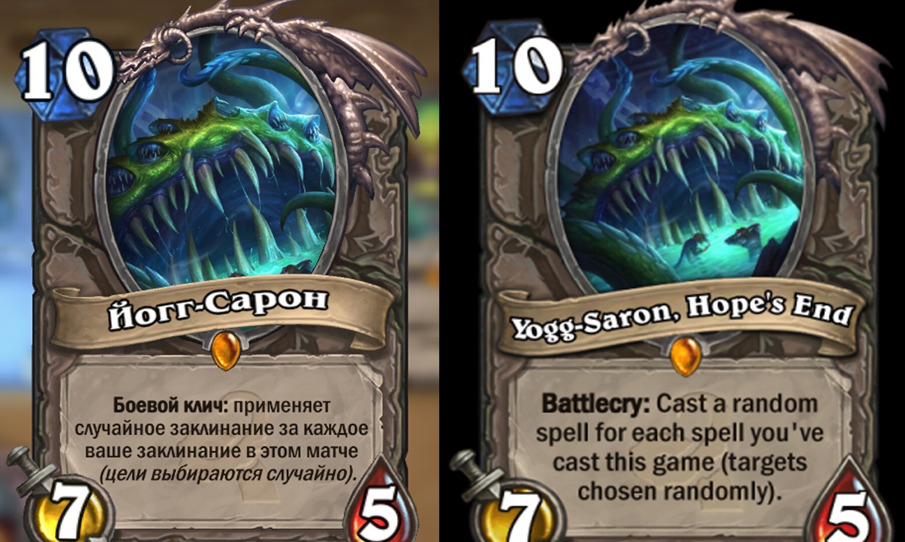Bal oldalon látható az új változat, jobb oldalon az eredeti rajz. A sima változaton még látszódnak emberi alakok, még több csáp és Yogg -Saron méreteivel is jobban tisztába kerülünk. Az új kép meg belezoomolt a szájába, szó szerint.