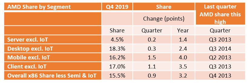 A Mercury Research jelentése szerint az AMD-nek ismét sikerült átcsábítania az Intel vásárlókat. Ugyanis a PC-k 18,3%-ában immáron AMD processzor teljesít szolgálatot, legutoljára 2014-ben volt hasonló az eredmény. A mobilprocesszorok piacán is erősítettek, ott 16,2%-on állnak.