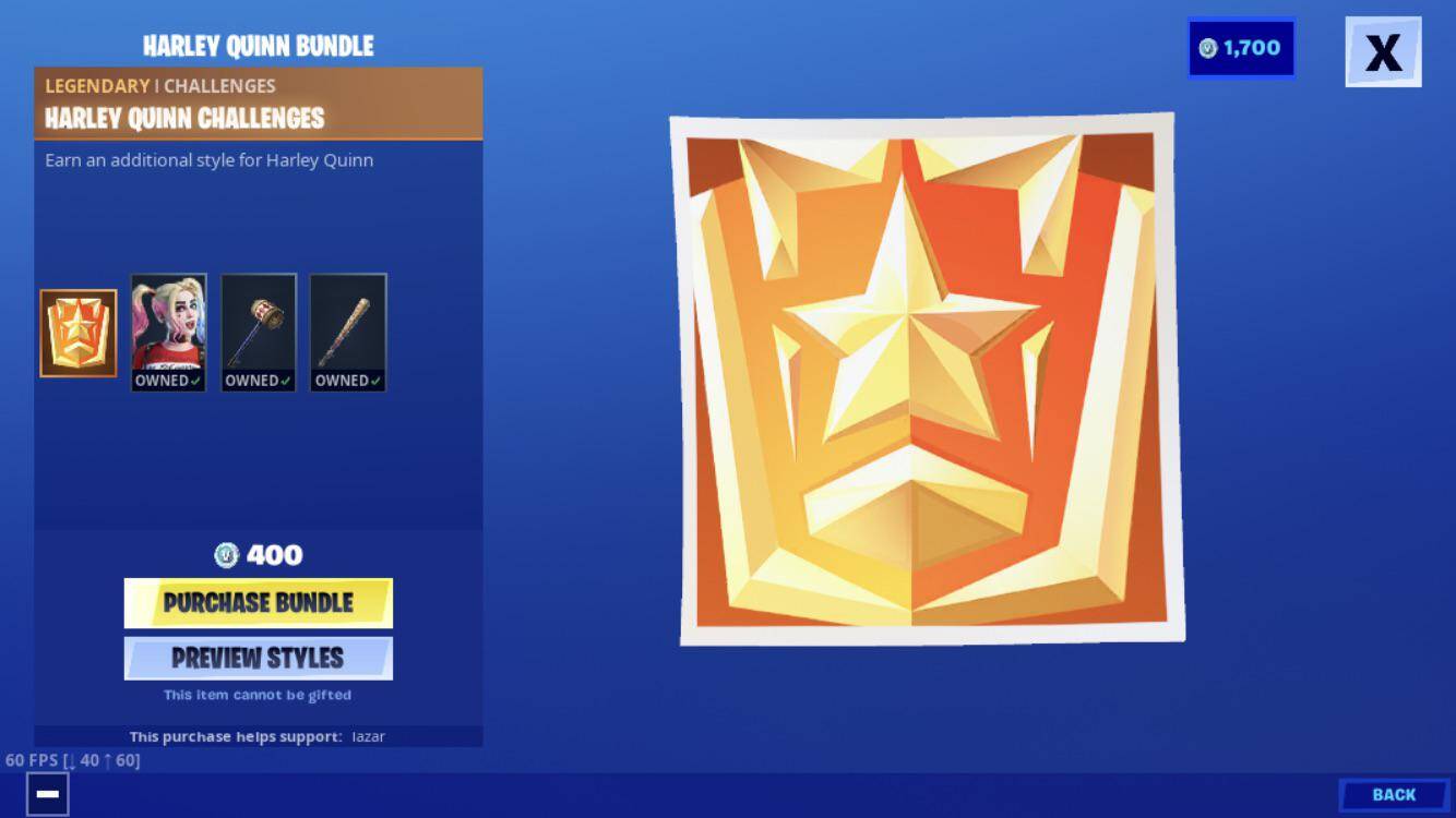 A skin egy exkluzív stílussal lett megpakolva, valamint két további tematikus Pickaxe is érkezett mellé. Persze azok, akik szerették volna egyben megszerezni a teljes „Harley Quinn élményt”, azok egy csomag keretein belül, némileg olcsóbban juthattak hozzá az összes tartalomhoz.