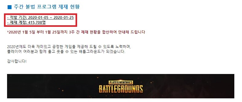 415,708 cheaters banned from 2020-01-05~2020-01-25 !!! from r/PUBATTLEGROUNDS