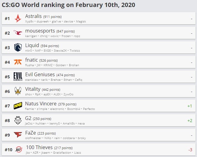 Ezen a világranglistán ugyanis 64 pont szinte semmi, elég csak megnéznünk az előző héthez képest történt friss változásokat. Előző héten az Astralis még 956 ponton állt, a mouz pedig 743-on. 213 pontos előnyből lett 64, egyetlen hét alatt.
