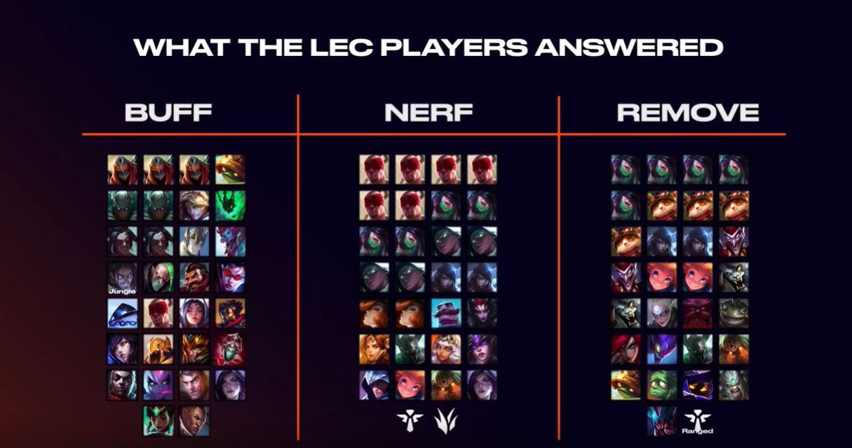 Az LEC stábja leültetett pár profi játékost és a League of Legends jelenlegi metájáról kérdezték őket. Kik azok, akiket gyengítenének, erősítenének, vagy éppen törölnének?