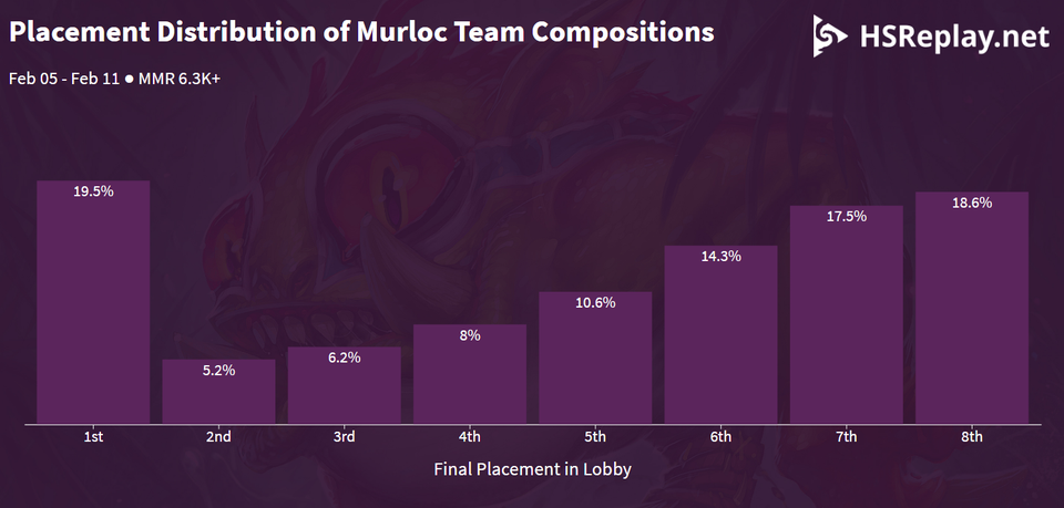 Ha Murloc koncepciót választunk, annak a legnagyobb a valószínűsége, hogy elsők leszünk (19.5%)! A második legnagyobb esély pedig arra van, hogy full utolsók leszünk (18.6%) Ha utánaszámolunk, a Top4-re összesen 38.9% esélyünk van. A 19.5%-os első helyre való esély tehát több, mint a 2., 3. és 4. helyre számított esély összesen (19.4%).