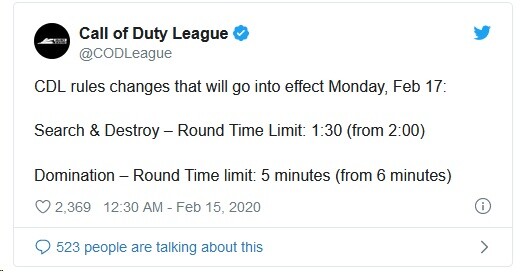 A Londonban nemrég megrendezett első Home Series versenyen azt tapasztalták a rendezők és nézők egyaránt, hogy a meccsek meglepően sokáig kitolódtak, megborítva ezzel az egész előre közölt menetrendet. Ezen próbál most javítani az Activision, a két játékmód időkeretének csökkentésével. A Search & Destroy 2 perc helyett 1,5 percig tart majd, a Domination meccsek időkorlátja pedig 6 percről 5-re csökken.