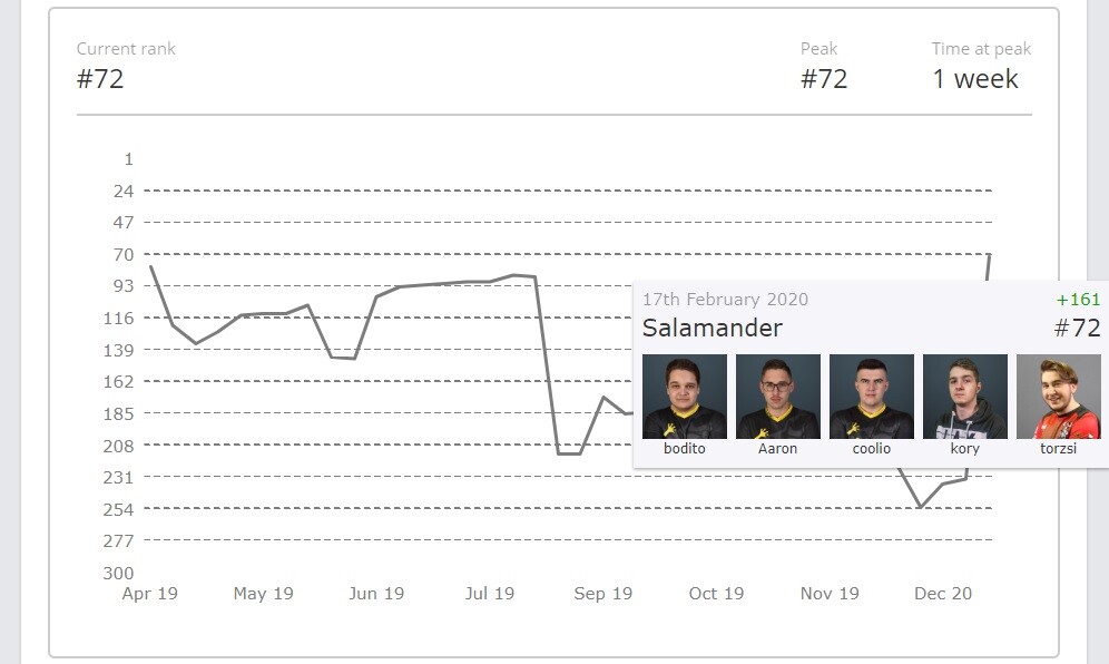 Legutóbb január 6-án voltak térképen boditóék, a Salamander akkor a világranglista 233. helyén állt. Azóta viszont kicsúsztak még a 300-ből is, ezért a lista nem is foglalkozott velük. Most viszont a FLASHPOINT meneteléssel hatalmasat léptek előre, 161 helyet javítottak.
