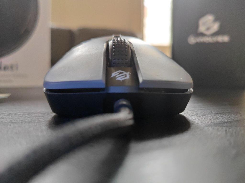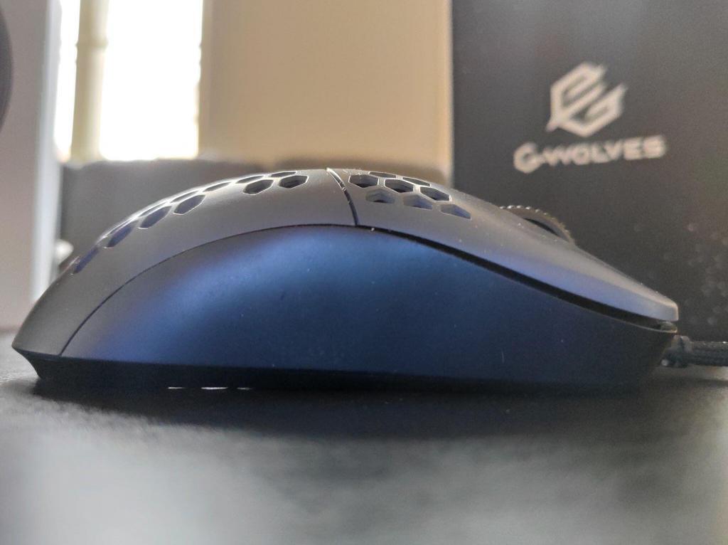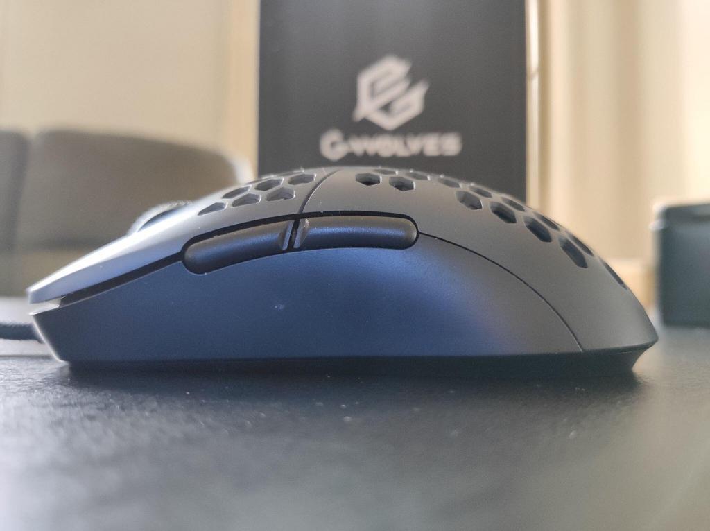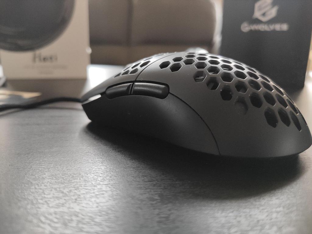 Engem kilóra megvett a Hati formaterve. Egy G102-nél picit hosszabb, így már a közepes méretű egerek közé sorolhatjuk. Az biztos, hogy a palm-szerető lapátkezűek nem ezt fogják választani. Picit hajaz a Zowie ZA legkisebb változatára, a ZA13-ra, de ebben az esetben egyenletesen középen van az egér legmagasabb pontja. A G-Wolves mérnökei a mi verziónkat matt műanyaggal látták el, amin szerencsére csak minimálisan látszódik a por, viszont az ujjlenyomatokat egyáltalán nem gyűjti a Hati.