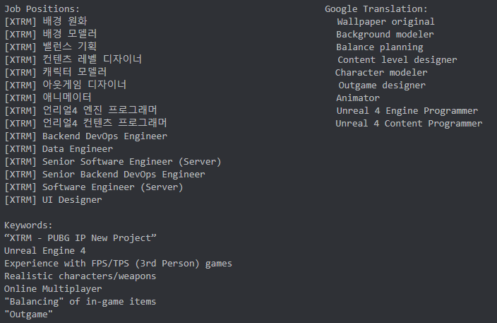 Az álláshirdetések egy része a PUBG Corp. hivatalos oldalán