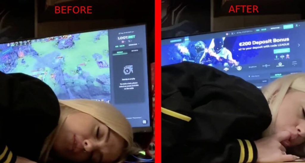 Az egyik képen még Dota 2 meccs, a másikon már egy egyértelmű hirdetés kapott helyet, mely deposit bonus-t ajánlott a felhasználóknak. A Dota 2 világában jól ismert moonduckTV igazgatója utána is ment a történetnek, és felkereste Freyát az üggyel kapcsolatban.