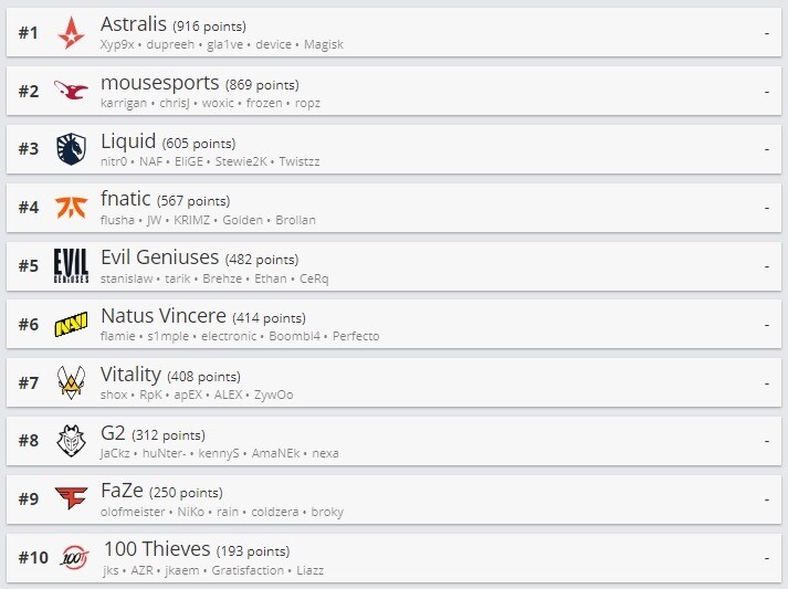 A világsztárok mezőnye semmilyen izgalmat nem hozott a CS:GO világranglista frissítése kapcsán. Az első 10 helyen konkrétan nulla mozgás történt, egyedül a pontszámok változtak a lista élén.