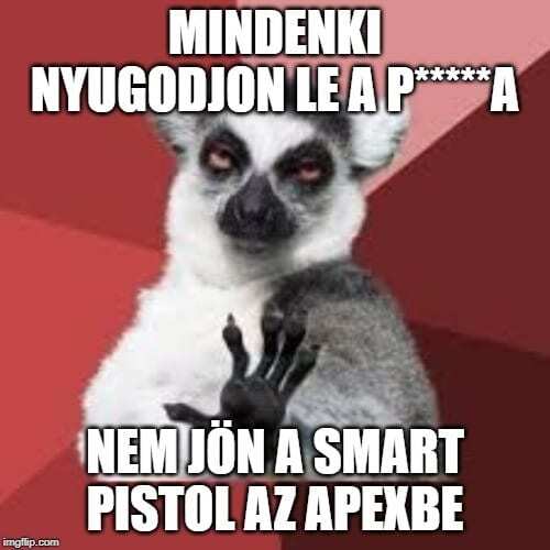 Nagyon bosszantó. Nem, nem jön (a Smart Pistol) az Apex-be. De köszi a félrevezető információ terjesztését.