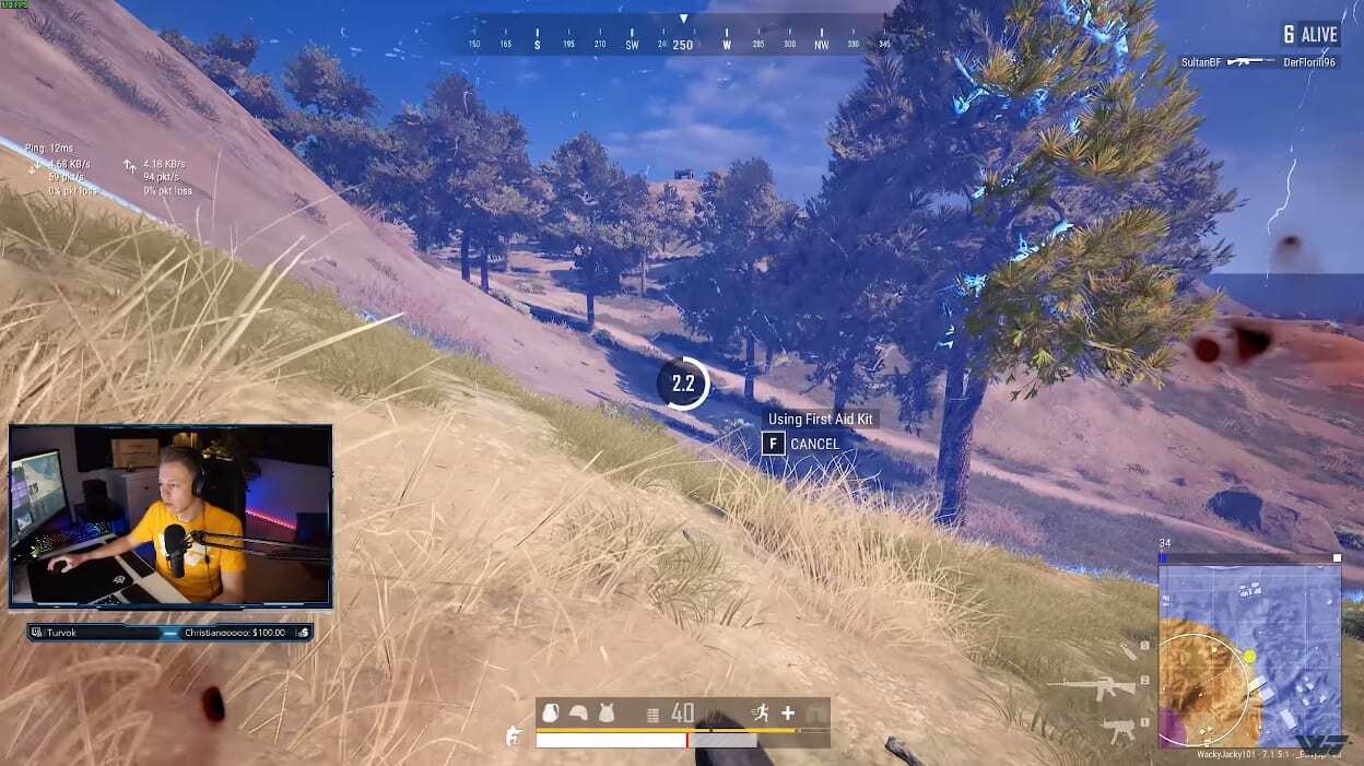 Egészen a Top6-ig tudta elverekedni magát úgy, hogy csupán a leugrás után kellett fegyvert használnia. Folyamatos gyógyulásokkal, bujkálással és egyetlen tűzpárbajjal sikerül az utolsó 6 játékos között maradnia.