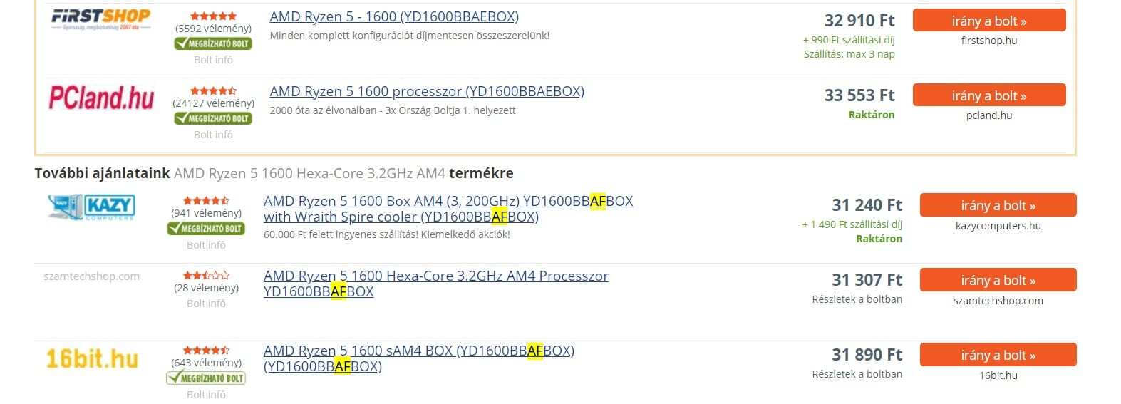 A vásárlás során mindenképp figyelni kell, ugyanis a boltok polcain ugyanúgy Ryzen 5 1600-ként találkozhatunk az AF verziókkal is. A különbség a termékkódban keresendő, az új verzió kódnevében ugyanis ott figyel az AF felirat. Így ha egy „YD1600BBAFBOX” kódnévvel ellátott Ryzen 5 1600-at választunk, úgy biztosan nem fog meglepetés érni.