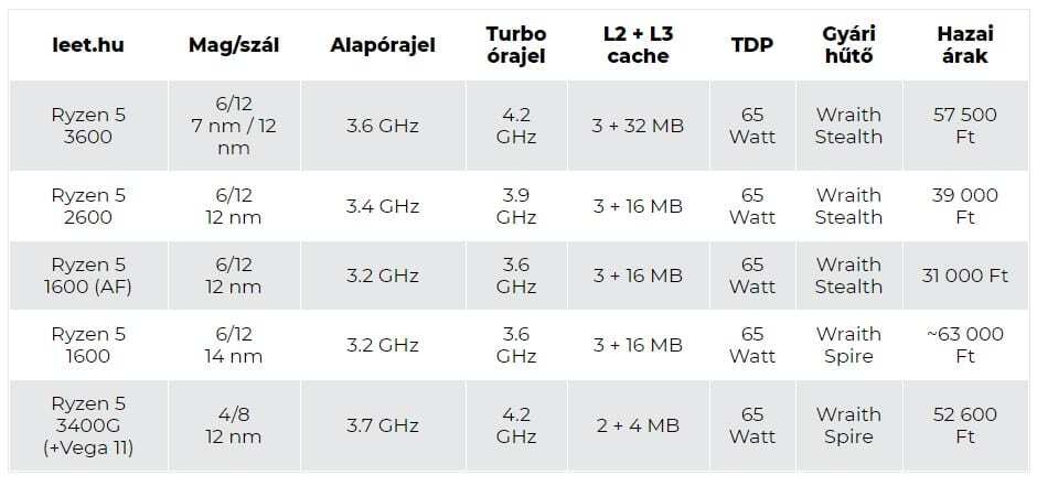Mint láthatjátok, a Ryzen 5 2600 és a Ryzen 5 1600 AF papíron csupán az órajelekben, na meg az árcédulákban különböznek. Az AMD ugyanis még a dobozos kiadáshoz csomagolt hűtőt is lecserélte. A 8 ezer forintos különbség pedig elég kecsegtető, főleg a spórolósabb konfigok esetén számíthat ez igazán.