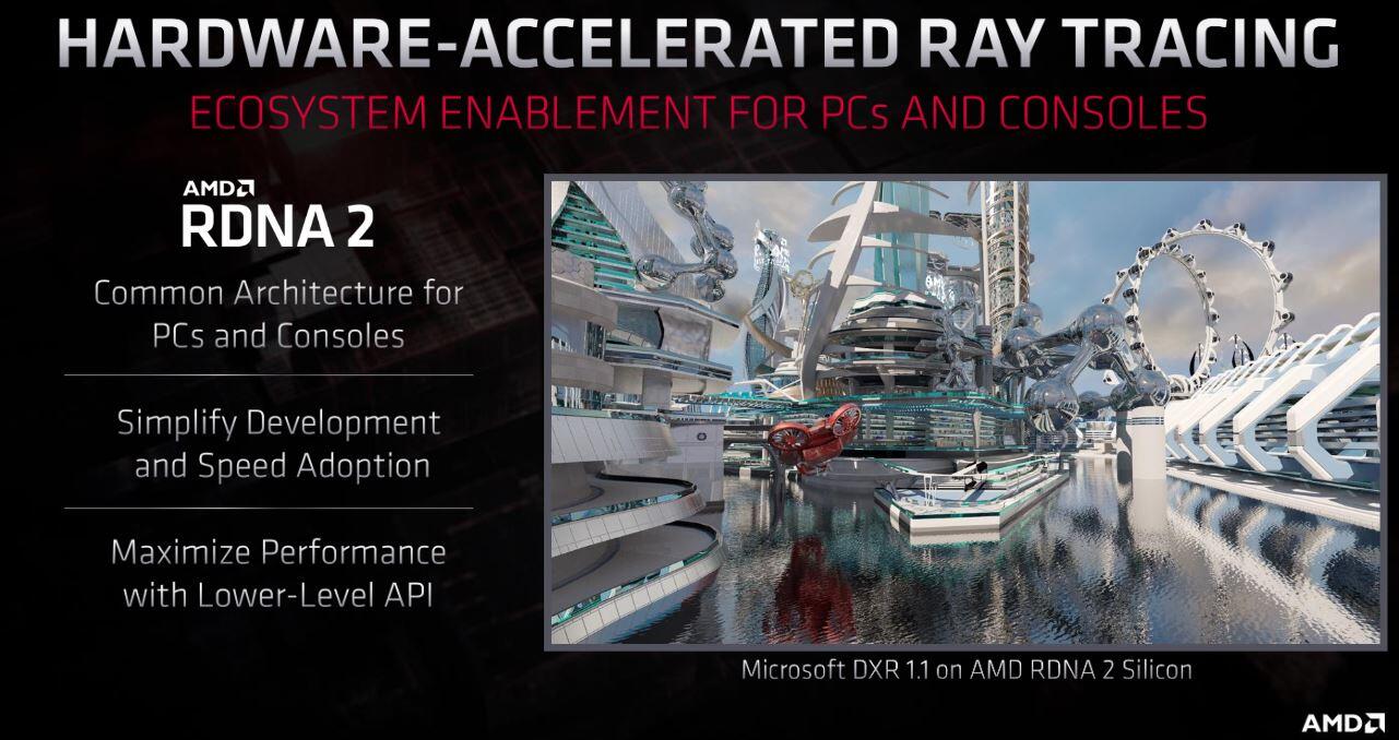 Ezenkívül a bejelentés fontos része volt a hardveres gyorsítású Ray Tracing bejelentése is, mely már idén, az RDNA 2-vel megérkezik.