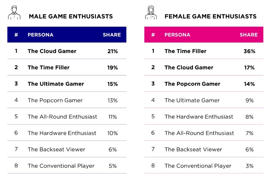 Az elhivatottság kérdése már más, ha a nemek eloszlásáról beszélünk. A lányok között ugyanis kevés az úgynevezett „Cloud Gamer”, vagyis a full fókuszban a monitorra meredő, tryhard egyén. A lányoknál inkább az időtöltést kereső gamerek a jellemzőbbek.