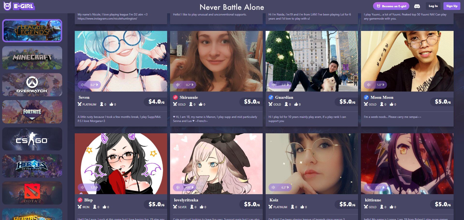 Felbukkant az interneten egy olyan oldal, ami már-már online prostitúció határait súrolja, ez pedig nem más, mint az E-Girl. Elvileg az oldal a magányos játékosok csapattárs keresőjeként született meg. Ezt simán el is hinnénk, ha nem ilyen képekkel reklámoznák magukat a leendő társak.