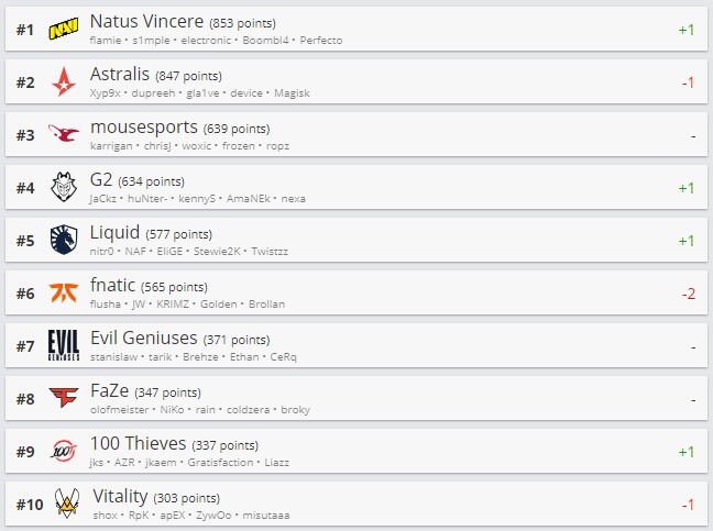 Amire számítani lehetett, mostanra tényleg bekövetkezett. Az Astralis elvesztette vezető helyét a CS:GO világranglista élén, 17 hét folyamatos elsőség után átadva helyét.