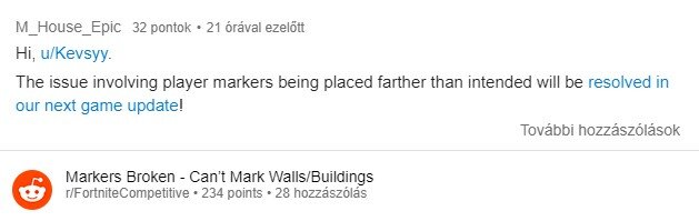 Szerencsére mint kiderült, úton van a megoldás, az Epic Games Redditen jelentette be, a gyógycsomagot a következő frissítéssel szállítják.