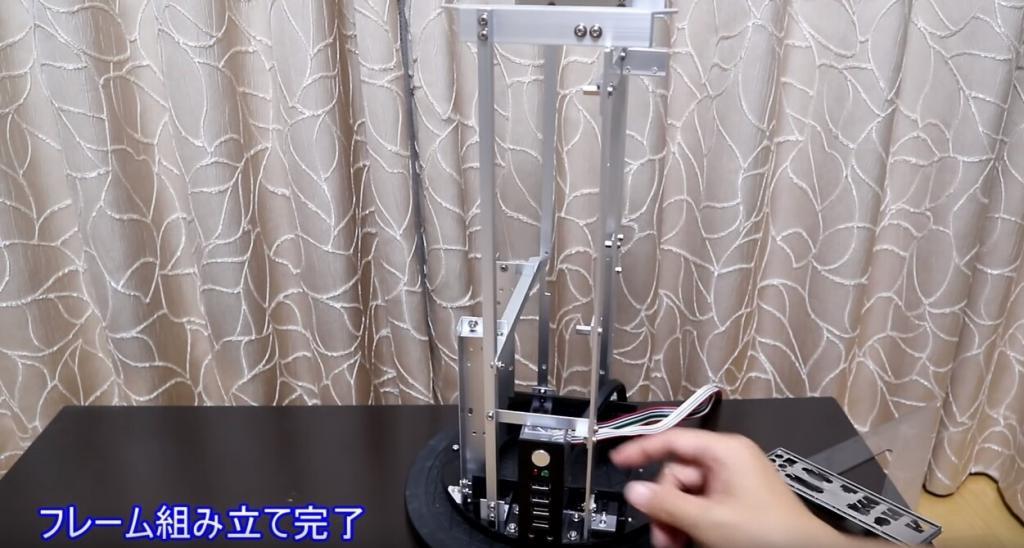Ha ez megvan, a talpazatra szépen el lehet kezdeni felépíteni a gépházat, melyet majd a PVC cső fog megkoronázni. Különösen nehéz feladat egy ilyen szűk helyen megfelelő kábelezést végrehajtani, a videóban azonban ez is, mint minden, nagyon könnyűnek tűnik.