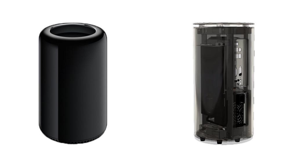 A 2013-mas Apple „trash can” és a szóban forgó gép 3D modellje.