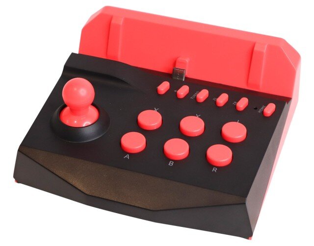 A Switch Arcade Controllernek nevezett kis eszközt egy külön dokkolóként lehet megkapni, vagyis csak beleillesztjük a konzolt, és használhatjuk is. Amint látható, található rajta egy irányító kar, valamint 6 megszokott gomb a mozgáshoz, kifejezetten a verekedős játékokhoz. Természetesen a szokásos kiegészítő gombok is helyet kaptak, mint a +,-, ZL, ZR és Home és Turbo gombok. A Turbo ugye arra jó, hogy egyes gombokat ne kelljen nyomkodni, folyamatos lenyomás esetén is olyan, mintha nyomkodnánk. Ez például folyamatos lövés, rúgás stb. esetén hasznos.