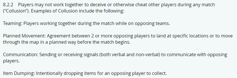 Az FNCS szabályzatának erre vonatkozó részlete – Epic Games