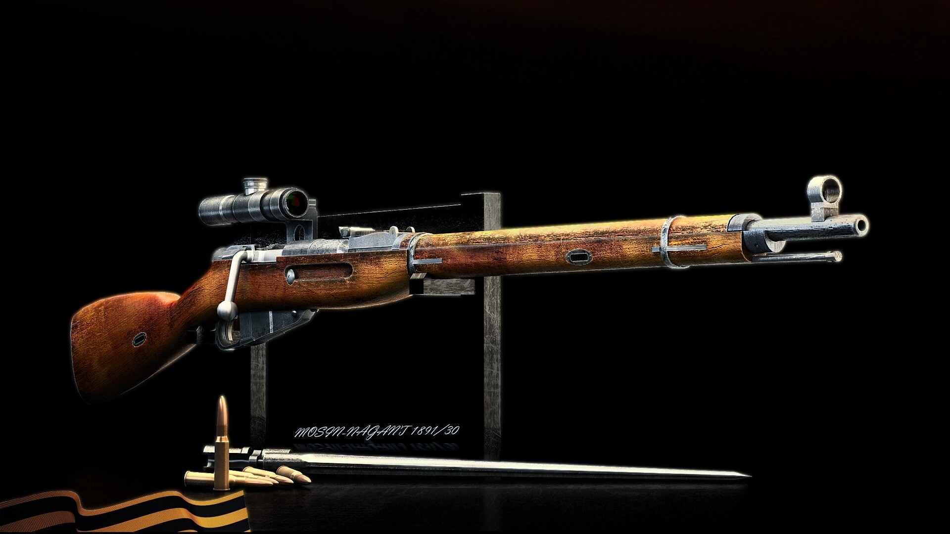 „A Moszin–Nagant-karabély a cári orosz hadseregben 1891-ben rendszeresített 7,62 mm űrméretű, belsőtáras ismétlőkarabély. Ismert még M1891 és Moszin-karabély néven, de gyakran nevezik háromvonalas puskának is. A cári hadsereg, majd modernizált változata a Vörös Hadsereg alapvető gyalogsági lövészfegyvere volt az AK-gépkarabély megjelenéséig.”