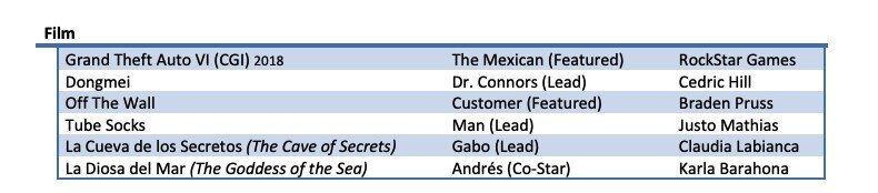 Jorge Consejo a saját „filmjei” listáját a „Grand Theft Auto VI (CGI) 2018” sorral bővítette, melyben meg is jelöli, ő játsza a „The Mexican” nevű karaktert, a megbízója pedig a RockStar Games. Érdekes, bár valószínűleg egyszerű emberi mulasztás, de a Rockstar eredetileg nem emeli ki az s betűt a hivatalos formátumukban.