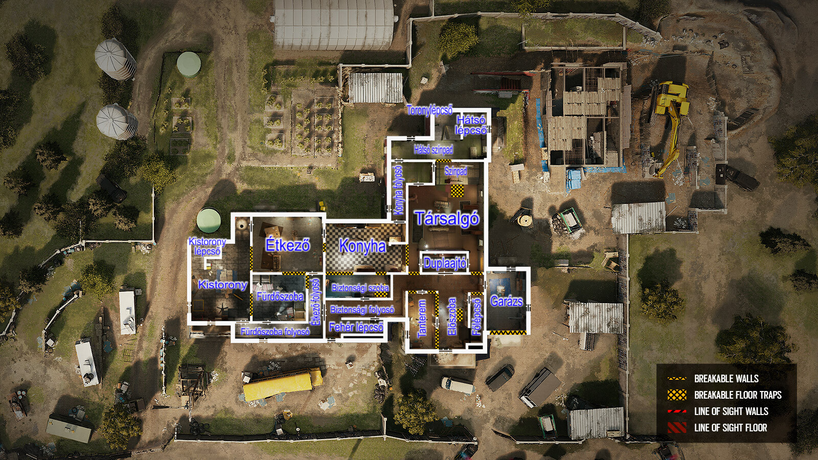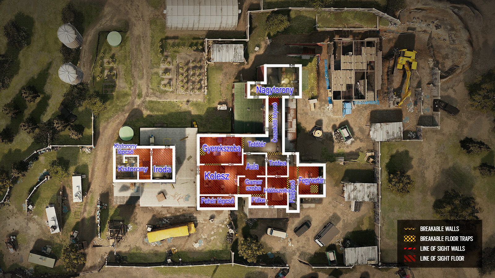 Ebben próbálunk most egy picit segíteni, mégpedig úgy, hogy készítettünk néhány képet a map különböző szintjeiről, ráadásul minden egyes zugot elneveztünk magyarul, természetesen az angol elnevezés mellett. Ezek némelyike megegyezik azzal, ahogy a Ubisoft elnevezte a szobákat, némelyiknek pedig köze sincs ehhez. Ezek csupán támpontok a helyek megismeréséhez, melyeket nagyban köszönhetünk Kavabangának (Pint&Pills).
